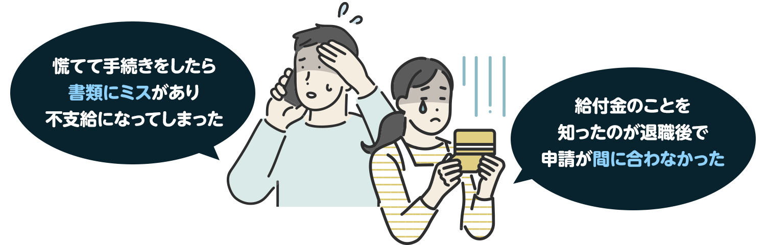 この中には在職中という早いタイミングから、複数の難解な手続きを申請書類の不備なく行わなければいけないため、申請をした・したかったにも関わらず不支給となってしまった方が多くいらっしゃると考えられます。