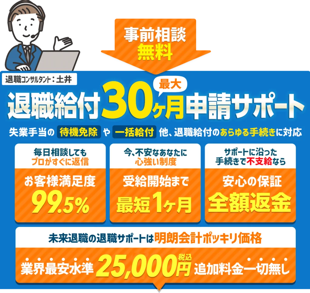 ご安心ください。累計2万件を超える退職相談をお受けしている未来退職の土井が、これらのお悩みを25,000円(税込)のみで全てサポートします。追加請求、成果報酬などの隠れた費用は一切ございません。